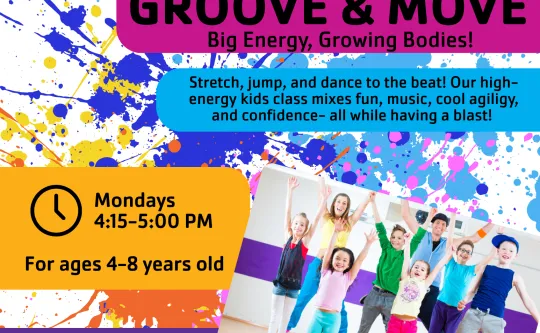 Stretch, jump, and dance to the beat! This high-energy kids’ class mixes fun, music, agility, and confidence—all while having a blast! Perfect for ages 4–8 who love to move and groove.
