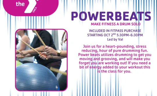 Join us for a heart-pounding, stress reducing, hour of pure drumming fun. Power beats utilizes drumming to get you moving and grooving, and will make you forget you are working out! If you need a bit of energy added to your workout this is the class for you.