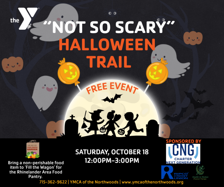 Dress up in your best Halloween costume and join us at the Y for some great family fun. Bring a non-perishable item to be collected for the Rhinelander Food Pantry. This is always a blast for kids of all ages!